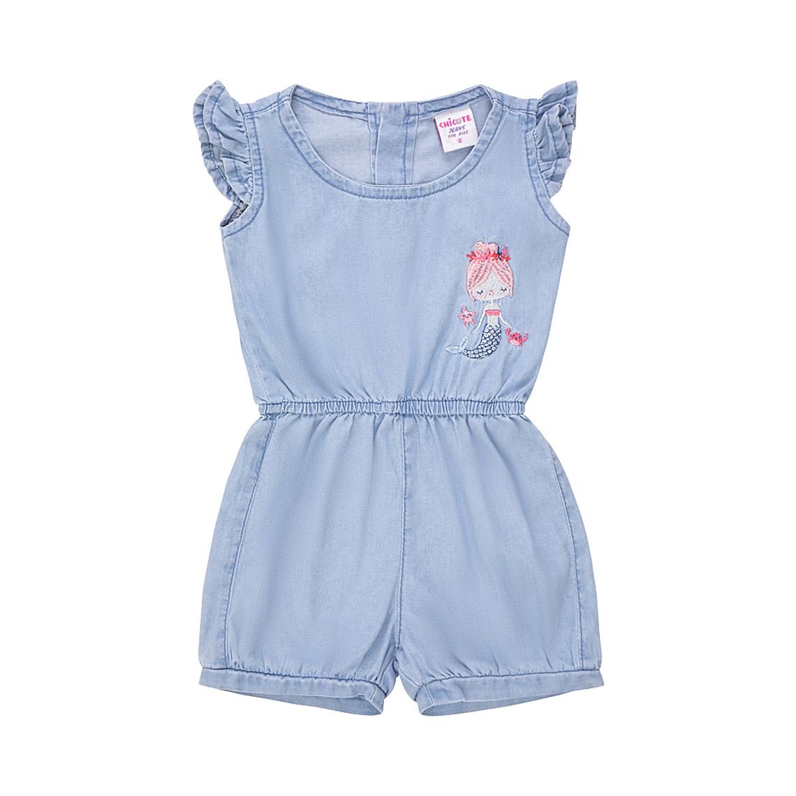 Jardineira Bebe Menina Jeans Com Body Branco Manga Curta Sereia Kids Roupas De Bebe E Acessorios